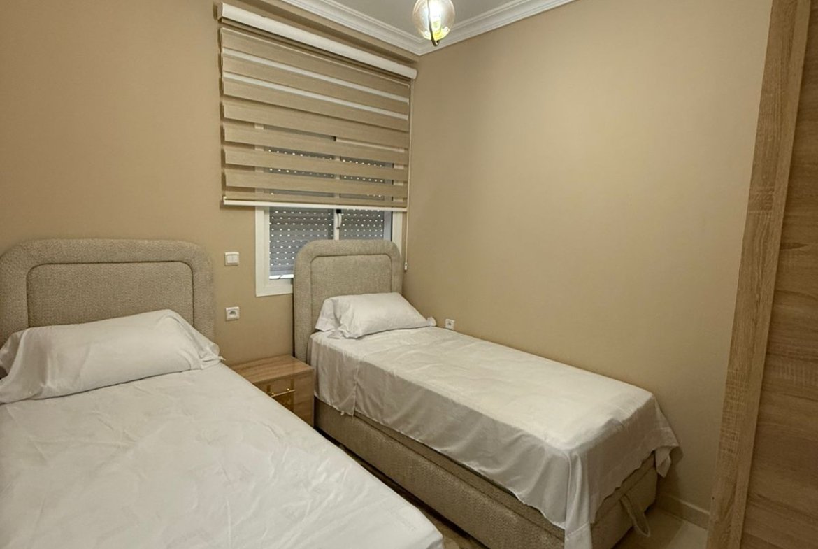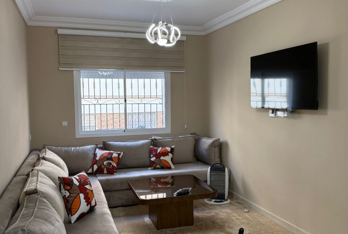 Appartement meublé de 50 m² à louer, situé en 2éme étage aux alentours du Stade.Il se compose de deux chambres, d’un salon, d’une cuisine et d’une salle de bain avec douche.
