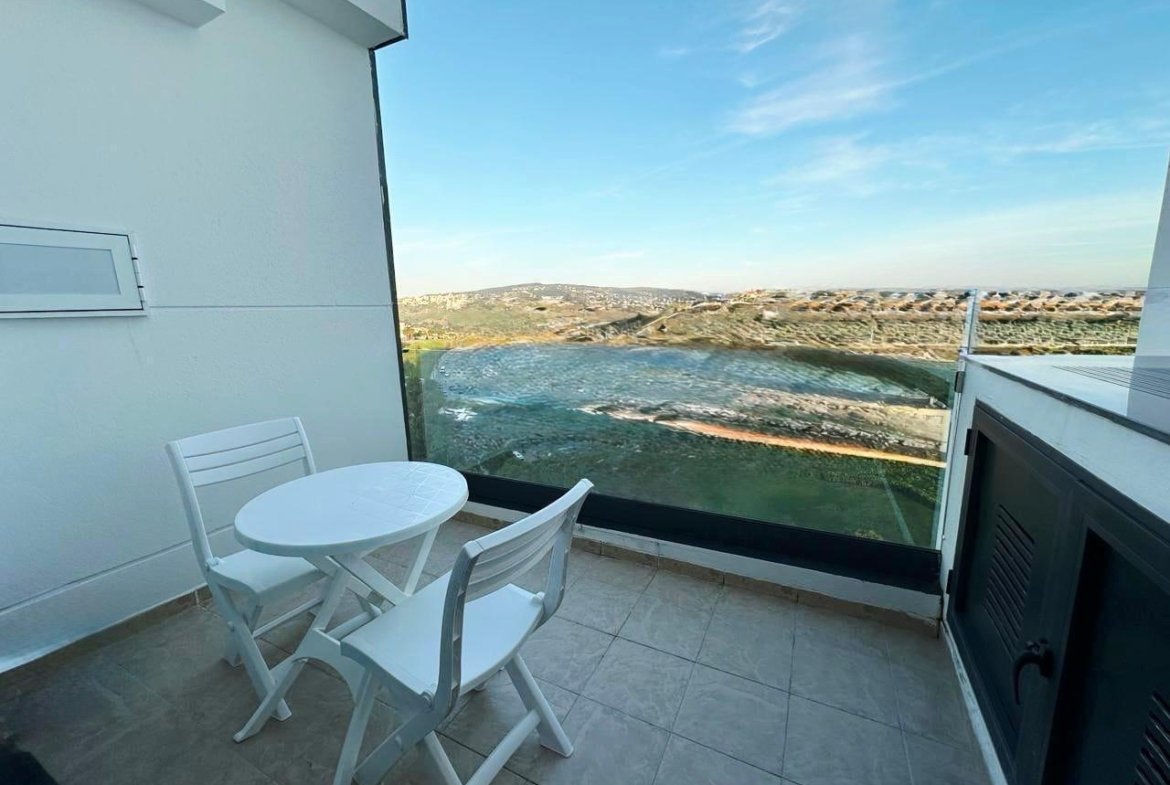 Il se compose d’une chambre, d’un salon avec balcon, d’une cuisine américaine et d’une salle de bain avec douche.